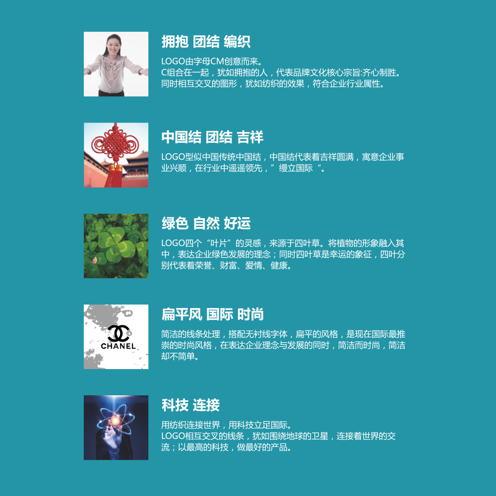 C組合在一(yī)起,猶如(rú)擁抱的(de)人(rén),代表品牌文(wén)化(huà)核心宗旨:齊心制(zhì)勝。同時(shí)相(xiàng)互交叉的(de)圖形,猶如(rú)紡織π的(de)效果,符合企業(yè)行(xíng)業(yè)屬性。
