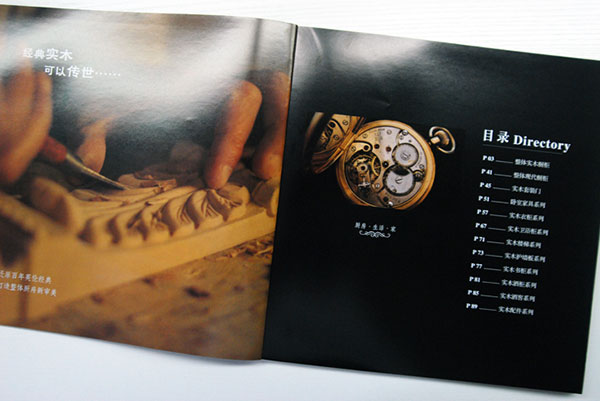 目錄設計(jì)部分(fēn),左側頁面設計(jì)師(shī)選用(yòng)了(le)£一(yī)張木(mù)匠(jiàng)師(shī)傅精雕細琢的(de)特寫照(zhào)片,照(zhào)片采用(yòng)了(le)模糊和(hé)顔色效果γ處理(lǐ),烘托出家(jiā)具的(de)古典雅緻,以及悠久的(de)曆史,更重要(yào)的(de)是(shì)&展示出了(le)其家(jiā)具做(zuò)工(gōng)的(de)精湛、精緻。從(cóng)設計(jì)、制(zhì↓)作(zuò)、印刷、後期加工(gōng)、到(dào)送貨上(shàng)門(mén)我們實行(xíng)一(yī)站(zhàn)式服務;與您精誠合作(zuò),共創雙赢。