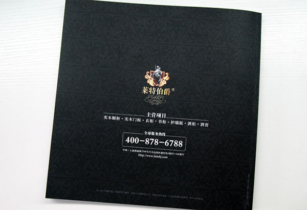 封底設計(jì)背景也(yě)采用(yòng)了(le)與封面一(yī)樣的(de)深褐色,但(dàn)紋路(lù)變成了(le)三角形的(de)花(huā)紋,這(zhè)裡(lǐ)是(shì)為(wèi)了(le)烘托萊特伯爵家(jiā)具精美(měi)的(de✘)的(de)一(yī)面,中間(jiān)的(de)logo相(xiàng)對(duì)封面而言縮小(xiǎo)了(le)一(yī)點,下(xià)面用(yòng)白(bái)色的(₹de)文(wén)字标注了(le)其經營的(de)範圍和(hé)電(diàn)話(huà)熱(rè)線,均是(shì)在整體(tǐ)色調和(hé)氛圍下(xià)的(de)∞點綴,并不(bù)影(yǐng)響整體(tǐ)的(de)效果。選擇空(kōng)靈設計(jì)的(de)理(lǐ)由:空(kōng)靈特色一(yγī)站(zhàn)式服務客戶:放(fàng)心、省心、